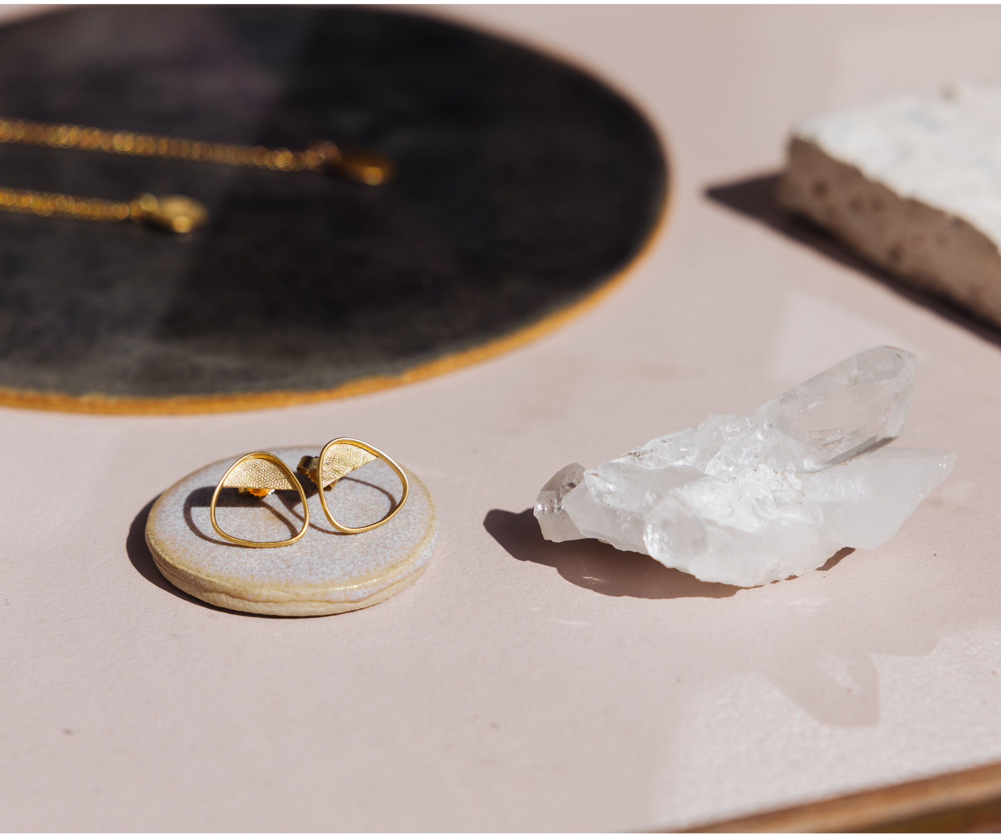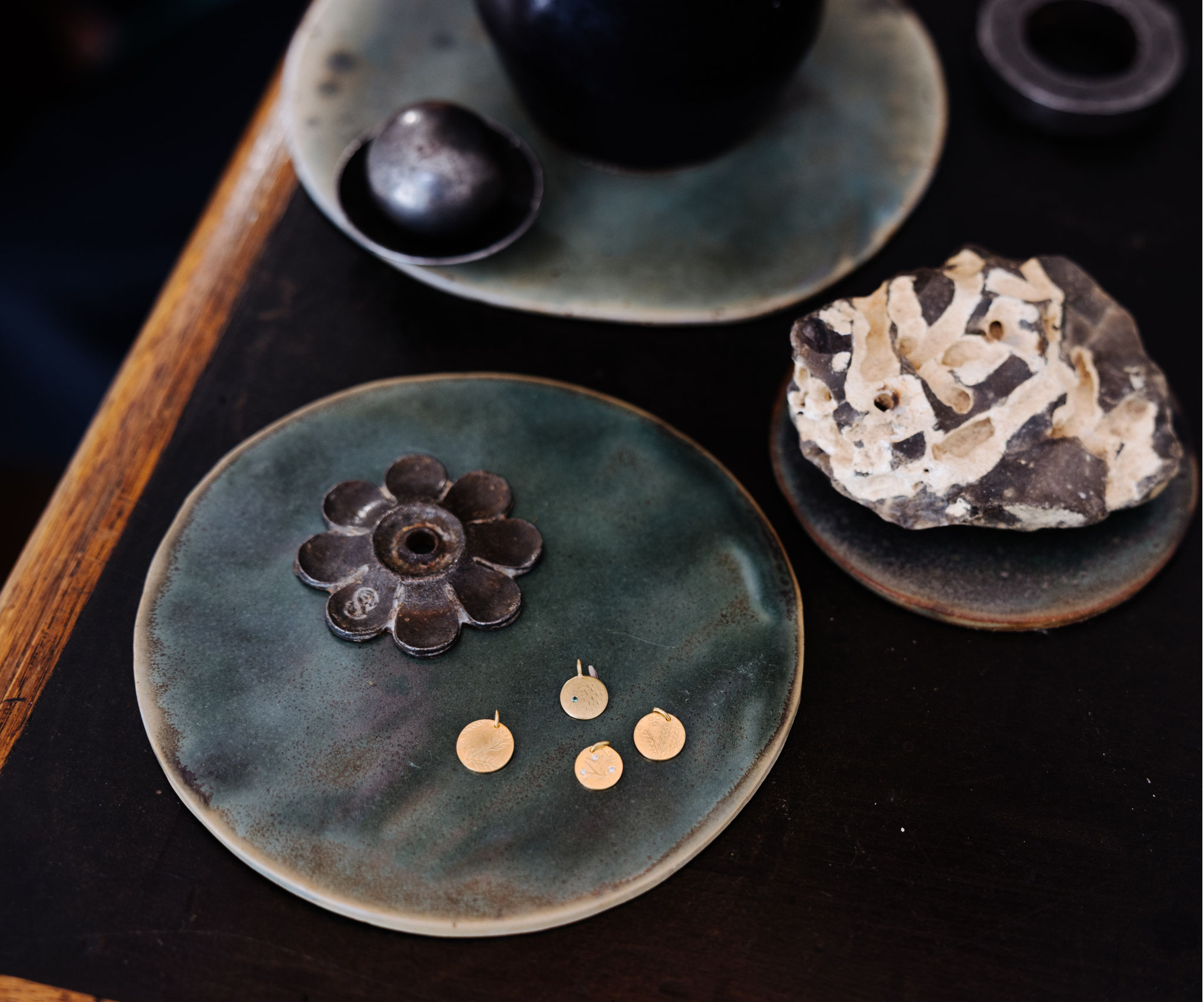 In meiner kleinen Werkstatt in Freiburg / Herdern entwerfe und stelle ich Schmuckunikate im sensiblen Materialmix aus recycelten Metallen, fair gehandelten Edelsteinen und Fundstücken her. In Auftragsarbeit entstehen maßgefertigte Entwürfe für individuellen, handgefertigten Schmuck.